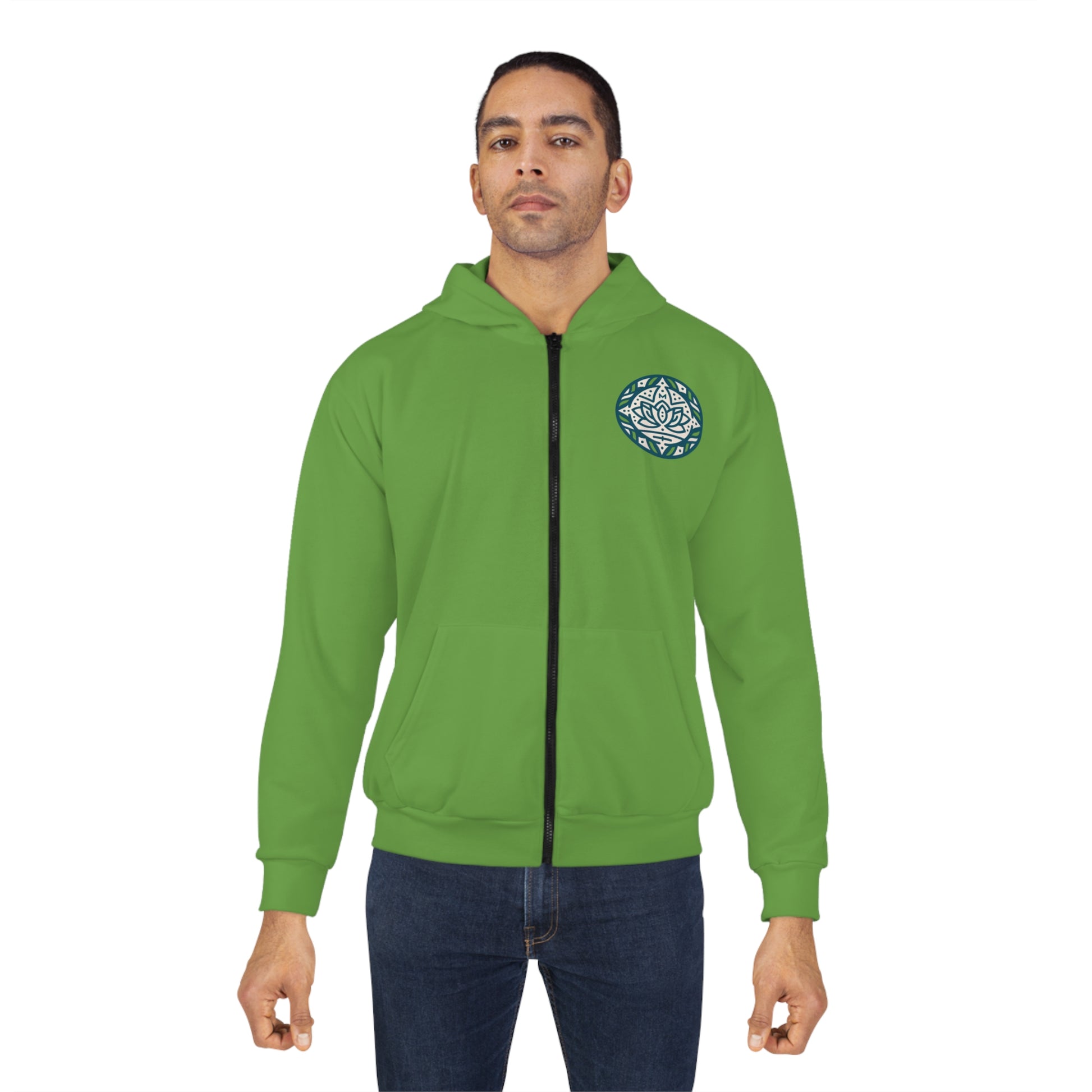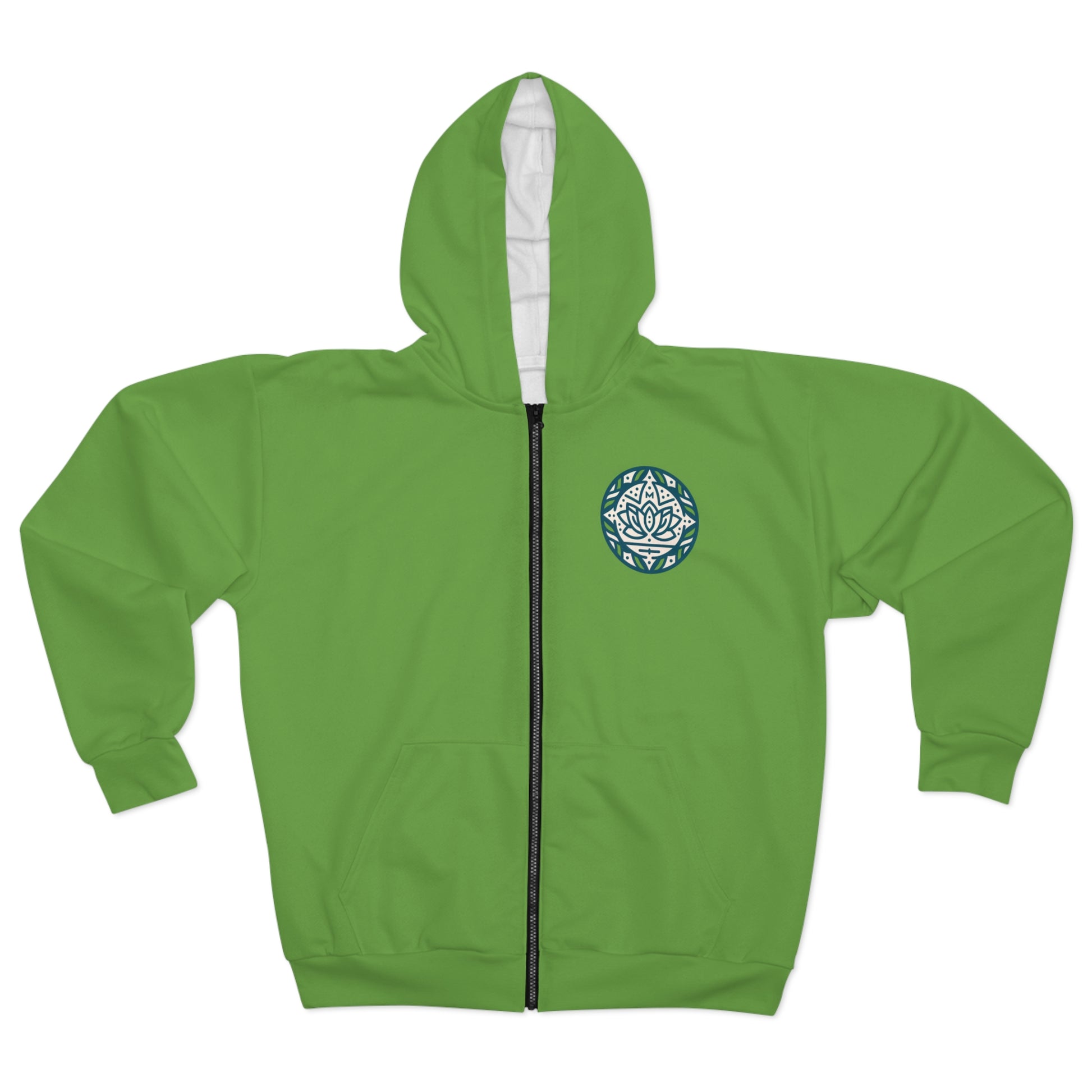 Eco-Friendly Unisex Zip Hoodie with Lotus Design