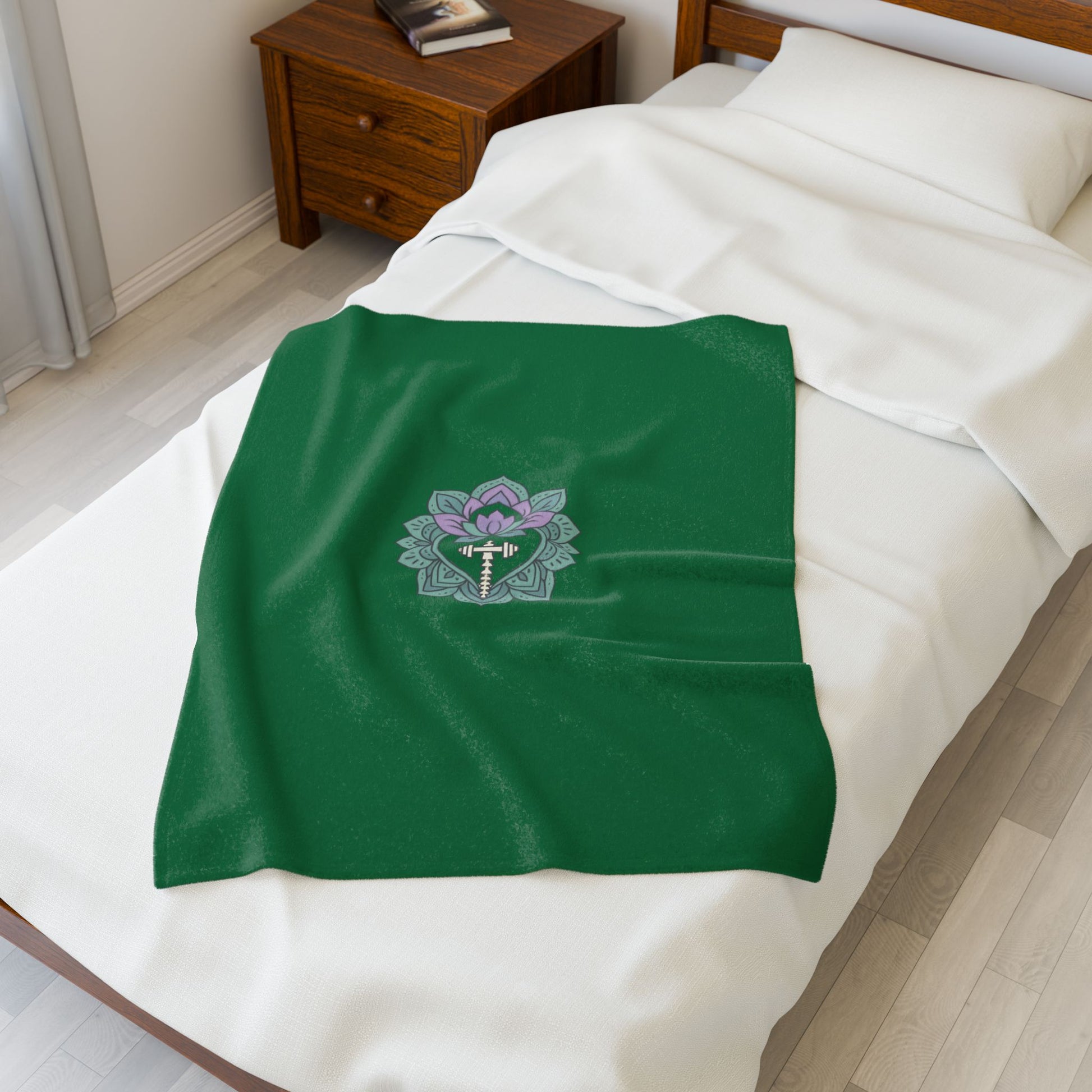 Lotus Blossom Velveteen Plush Blanket – Cozy Green Decor for Meditation & Relaxation
