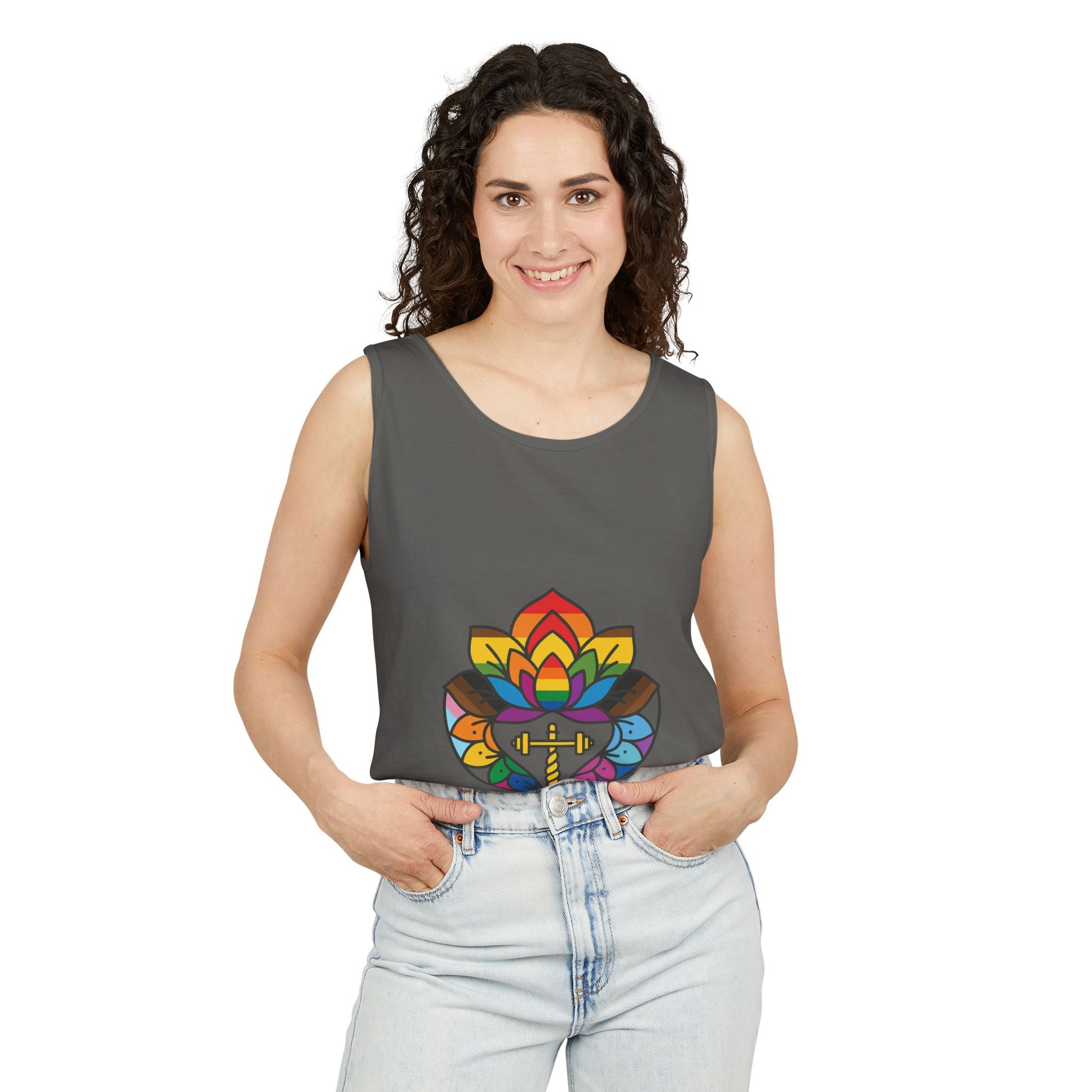 Celebrate pride with this garment-dyed tank top, perfect for those who want to show their support and love. The relaxed fit and soft color make it suitable for everyday wear or pride events. Ideal for individuals looking to make a statement and showcase their pride during Pride Month or LGBTQ+ celebrations.